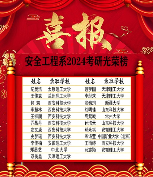 春风得意马蹄疾,一日看尽长安花。在姹紫嫣红、清荣峻茂的季节里,太阳集团官网安全工程系传来了令人振奋的喜讯——我系学子在今年的考研大战中取得了骄人的成绩,捷报频传,喜讯连连!