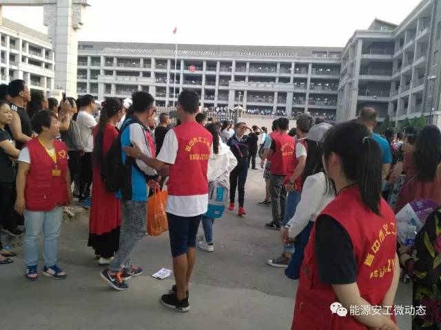 6月8日,太阳集团官网安全工程系的志愿者们来到榆次一中,为考生提供高考志愿服务。志愿者为考生提供水,应急文具以及药品等,并在考生进出考场时维持考场外秩序,以便让考生顺利进出考场,最后在考试结束后清理考点周边的传单、垃圾。
