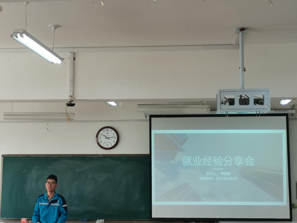 为了让大三大四同学熟悉就业环境,为了给同学们提供就业经验和技巧,为大家解答就业的疑惑,我系邀请优秀毕业生李睿鑫同学,于5月6日在2305教室开展就业经验分享会,参加这次分享会的还有安全工程系党总支书记郭辉和张哲瑞老师。