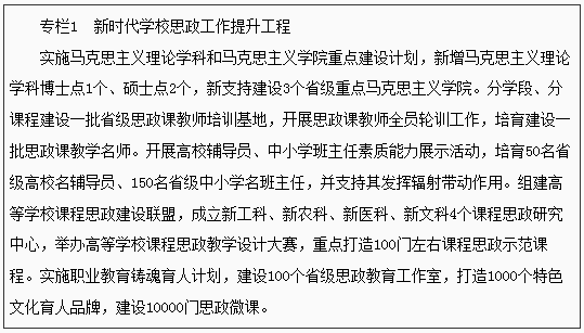 ——高等教育实现“高原上起高峰”。聚焦内涵式、高质量发展,持续推动“1331工程”提质增效,高等学校分类发展体系进一步完善。研究生教育规模稳步扩大。新一轮“双一流”建设和学科评估实现重要突破。推动本科专业升级换代,新工科、新医科、新农科、新文科建设取得突破性进展。