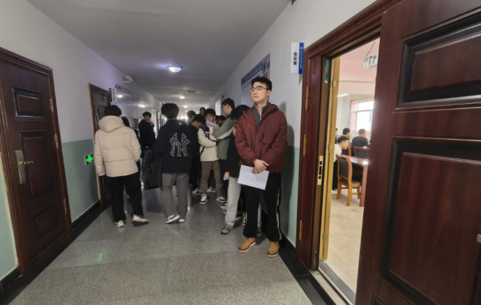 招聘活动尚未开始,同学们便早早来到现场排队等候,期待能在此次招聘中获得宝贵的工作机会。