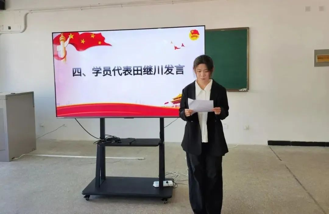 学员代表田继川同学号召同学们以饱满的热情、坚定的信念、务实的作风,投入到青马工程的学习和实践中,成长为真正能够担当民族复兴大任的时代新人。