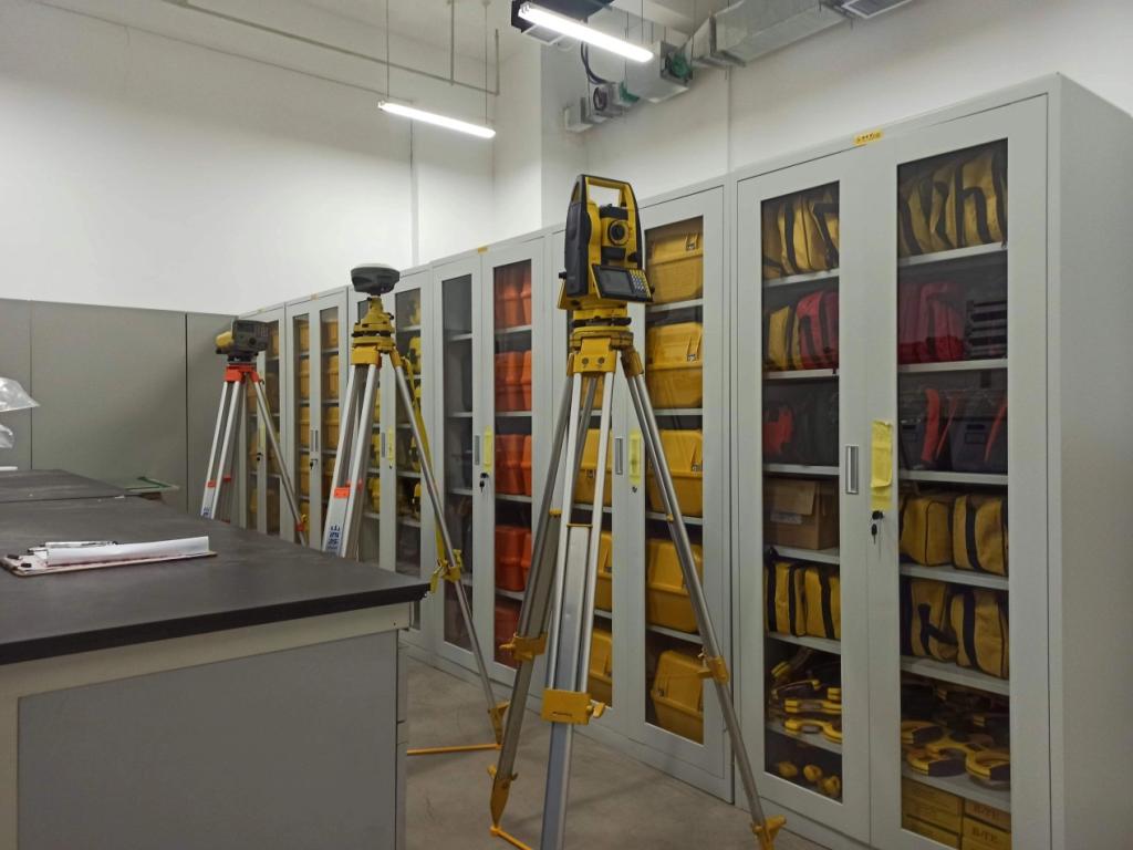 地质与测绘工程系“测量仪器室”建立于2014年,现占地面积86.4平米,主要实验设备有全站型电子速测仪(普通型、精密型)、水准仪(自动安平水准仪、电子水准仪、精密水准仪)、GNSS接收机(基准站、移动站)、经纬仪及配套辅助测量设备。本实验室主要为我校测绘工程、资源勘查工程、地下水科学与工程、采矿工程、城市地下空间工程等专业相关课程服务,主要承担数字地形测量学、大地测量学、GNSS原理及其应用、工程测量学、矿山与地下工程测量学、变形监测与沉陷工程学、不动产测量与管理、测量学、矿山测量、工程测量等课程的30项实验教学任务;承担数字地形测量实习、大地测量学与GNSS应用实习、测绘技能训练实习、矿山与地下工程测量课程设计、工程测量实训、测量学实践、毕业实习、毕业设计(论文)等8项专业能力实践课程的教学任务
