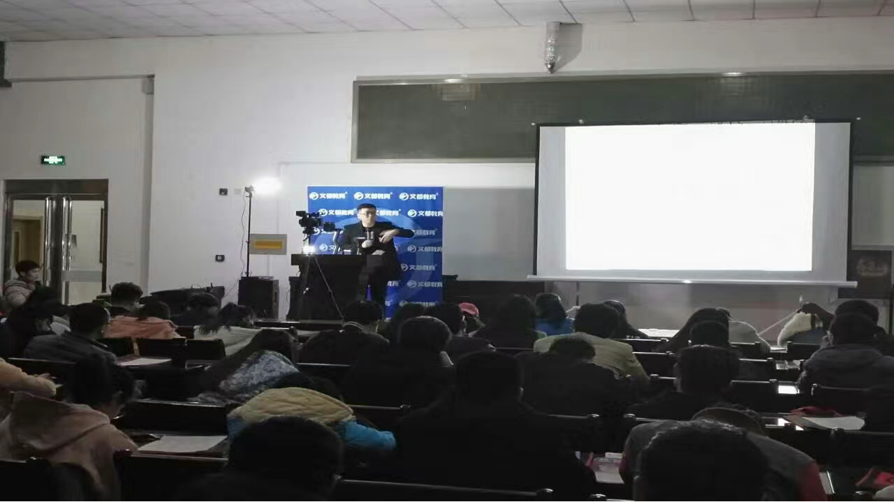 本次讲座针对大二、大三和大四学生对考研复习和准备方面的问题进行讲解。刘一男老师针对英语单词积累和记忆方面进行了讲解。在课堂上现场进行了英语单词记忆教学,分别向学生们展示了联想记忆法,归类法,中英发音相似法和英语创造法等一些快速记忆英语单词的方法。在讲座中刘一男老师幽默有趣的讲课方式吸引了台下的学生们,带动了学生们学习的积极性。最后由文都考研的校长小毛老师进行了的总结。