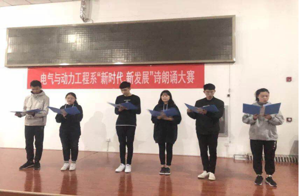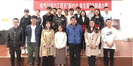 为了深入贯彻落实党的十九大精神思想,加强当代大学生对习近平新时代中国特色社会主义思想的理解,电气系于2019年3月27日在二号教学楼报告厅举办了以“新时代,新发展”为主题的诗朗诵比赛。电气系书记刘超群、电气系分团委书记贾文娟、电气系教师谢雪丹、宋晓皎以及学生会主席郭凯龙等作为评委出席了此次比赛。