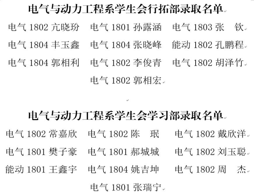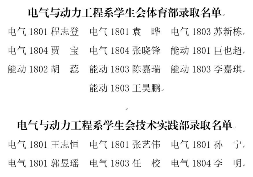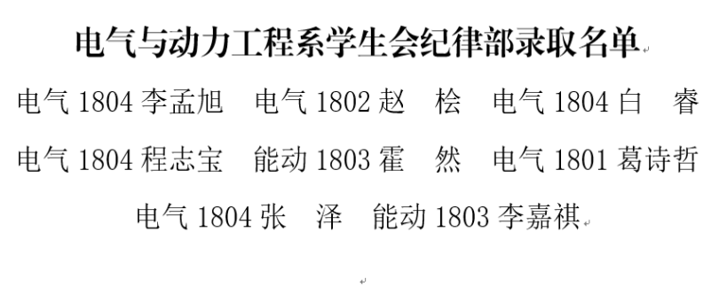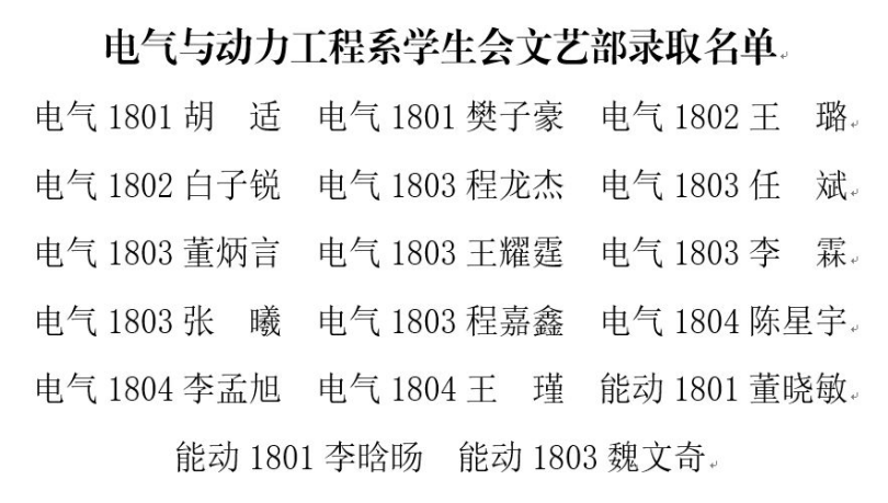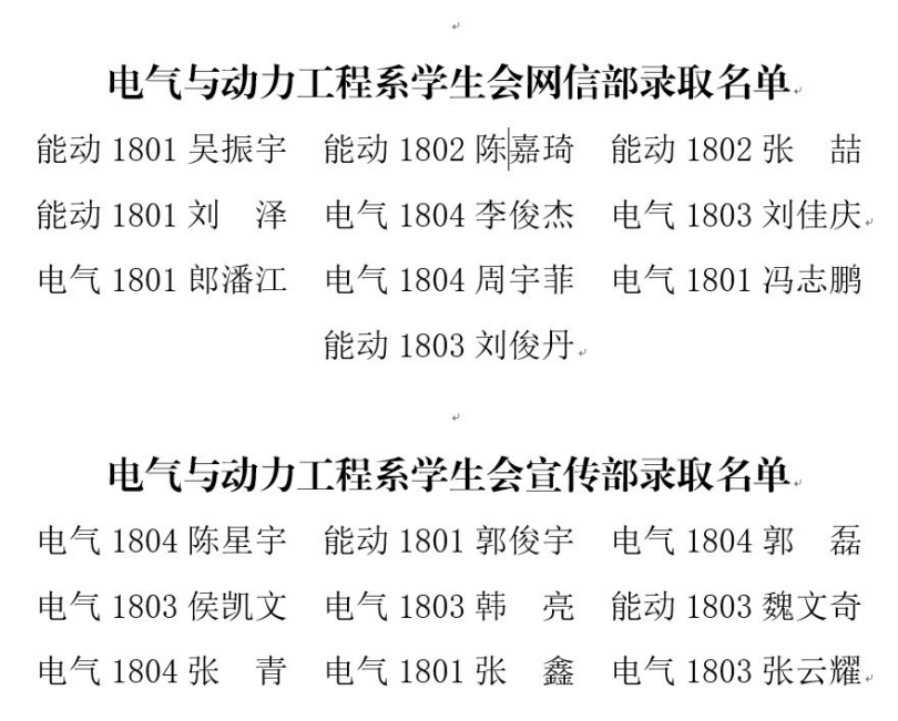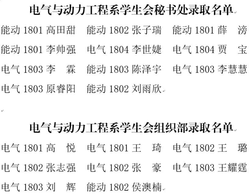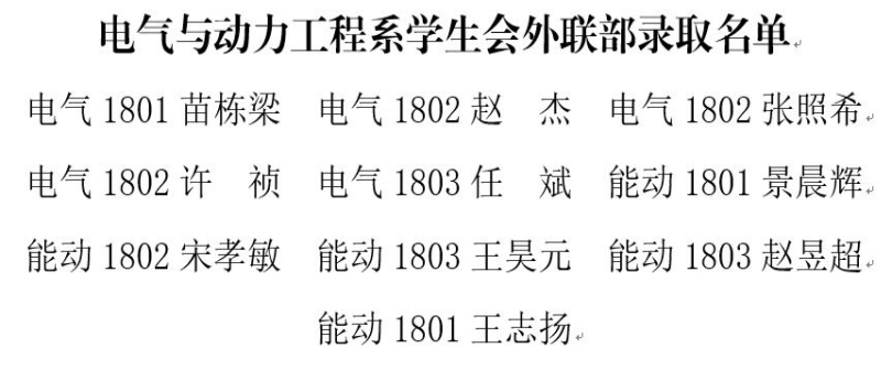 经层层筛选及周密分析,电气与动力工程系2018级学生会成员名单正式确认,名单如下: