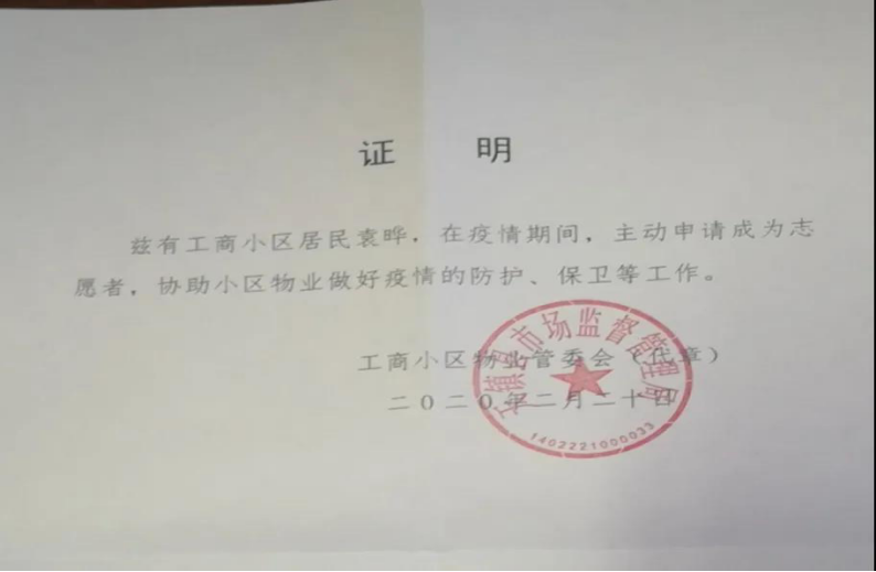 在疫情暴发后,我的父亲作为党员,母亲作为护士,每日奋斗在抗疫前线,在父母的影响下,我与朋友自愿报名参加了孝义市水峪矿区的疫情防控志愿者,在这个特殊时期,更需要我们这些充满活力的年轻力量去奉献自我。期间我们体会到了疫情带来的严重影响,更坚定了我们为抗击疫情贡献力量的决心。愿每一个工作在防疫岗位的人都能平安健康,愿中国早日战胜疫情。