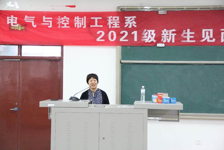 为帮助电气与控制工程系2021级新生尽快适应身份转换,制定科学合理的学习生活规划,了解我系专业设置情况及发展前景,明确就业方向,树立未来的奋斗目标,2021年9月18日下午3点,我系在综四阶教室召开了2021级新生见面会。出席本次新生见面会的有我系书记任丽芳,主任任家智,教师代表林异凤、乔凌霄,分团委书记谢雪丹,辅导员王小清,组织员郭甜甜以及新生班主任闫光美。