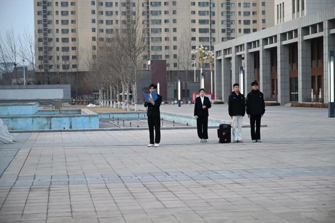 伴随着国歌奏响,鲜艳的五星红旗迎着初升的太阳缓缓升起,迎风飘扬,全体师生面向国旗肃立,行注目礼,齐声高唱国歌,以昂扬的姿态,开启春季新学期征程。