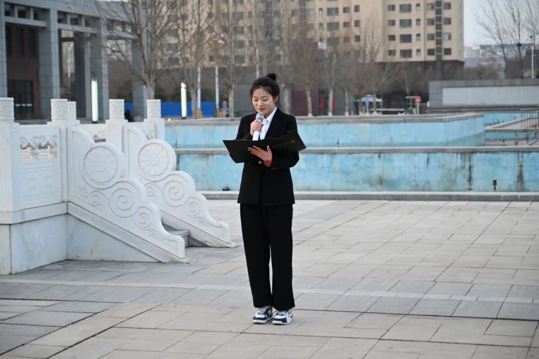 学生代表张展谕在国旗下演讲:“明德解行立志,铸就无悔青春”。演讲提到作为新时代青年,我们要练就斗争路上的“真功夫”,做本领过硬的“筑梦人”。树立“青春之我”的奋斗之姿,做追逐梦想的“追梦人”。扛起“强国有我”的青春之责,做百年复兴的“圆梦人”。