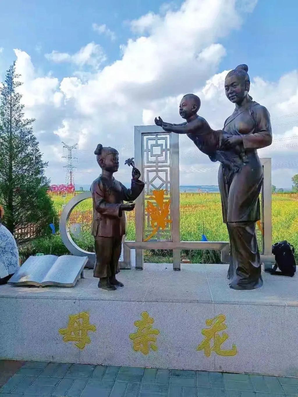 随后实践队员跟随唐万来到唐家堡村黄花主题公园,黄花主题公园是“忘忧大道”中一处集黄花观赏、采摘旅游于一体的乡村旅游景点。入口处有两组铜制人物像,座基正前方分别镌刻着“母亲花”和“忘忧草”金色大字,据说,黄花的花语一是代表母亲,二是忘却忧愁。沿栈道前行,实践队员在“大同黄花·忘忧云州”标语前驻足,唐万介绍到,习近平总书记来这里考察时,村民正在田间劳作,总书记亲切和村民打招呼,并了解黄花的种植情况,总书记的到来让“黄花乡”的“黄花人”看到了如花似锦的美好未来。此时,实践队员按捺不住激动的心情,拿出相机,对准这片美丽的花海,“咔嚓”一声,定格了这令人陶醉的瞬间。