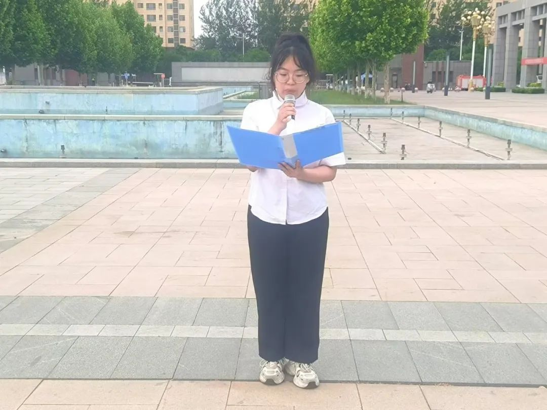学生代表赵亚楠在国旗下演讲:“一百年前,一群有志青年掀起了反帝爱国的风潮,一百年后,新时代的青年正踌躇满志,意兴磅礴,时刻准备着,书写祖国崭新的赞歌,强国一代,有我在,奋斗青春最精彩。”