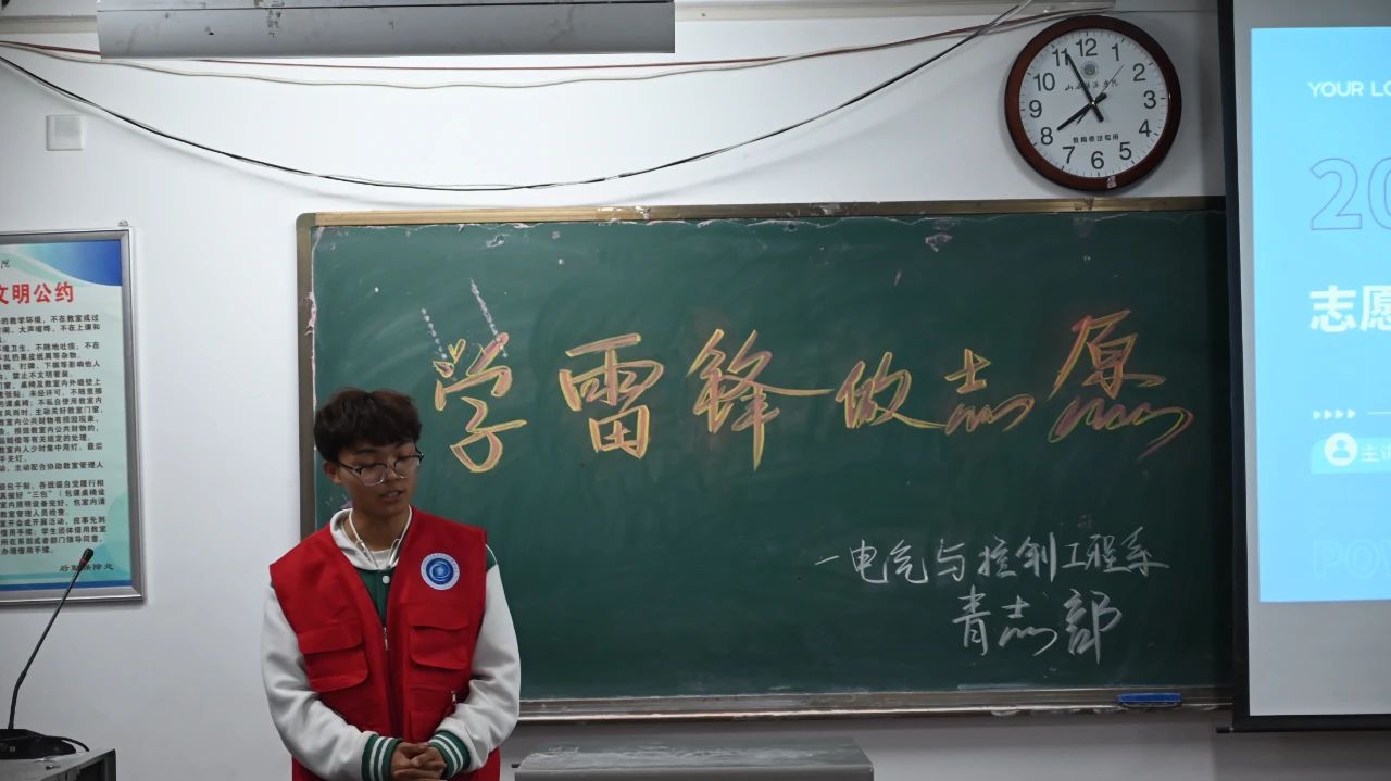 2025年3月17日,电气与控制工程系分团委于1308教室成功举办了“学雷锋 做志愿 服务改革建新功”主题活动,全系学生踊跃参与。本次活动旨在激励全系学生积极投身社会实践,着力培养综合能力,全面提升综合素质,强化学生思想道德建设,大力传承雷锋精神。