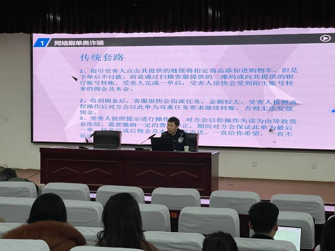 最后,警官提醒同学们对待电信网络诈骗要保持高度警惕,不贪图便宜,不被虚假广告迷惑,在日常生活中要懂得保护个人身份信息,不随意注册、填写网络账户、银行卡等私人资料;要以学业为主,积极参加各类有益身心健康的活动,不要沉湎于虚拟世界无法自拔,把一切诈骗萌芽扼杀在摇篮之中。
