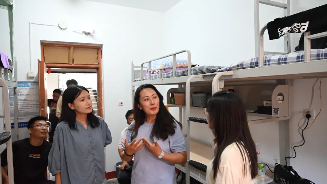在走访过程中,老师与新生亲切交流,询问他们入学后的感受和适应情况,了解他们在生活中遇到的困难,对新生提出的问题耐心解答,叮嘱同学们要尽快融入新的环境,与室友互相包容、相互照顾、互相学习,共同营造温馨和谐的宿舍环境,同时,老师提醒新生注意安全,妥善保管个人财物,遵守学校的规章制度。