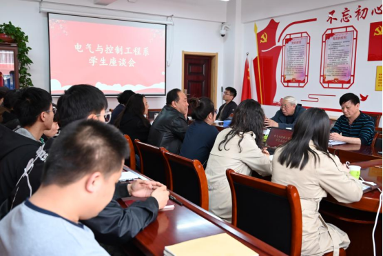 根据学院教学督导委员会通知,电气与控制工程系于2024年4月7日14:00在2204召开了学生座谈会暨系部教学督导组工作汇报会。院教学督导组张洪斌和方明烨等督导老师莅临我系指导工作。我系参会人员有系主任任家智、副书记李芳、副主任郑婷一、系教学督导组成员、教师代表和电气系各年级学生代表。会议由任家智主任主持。