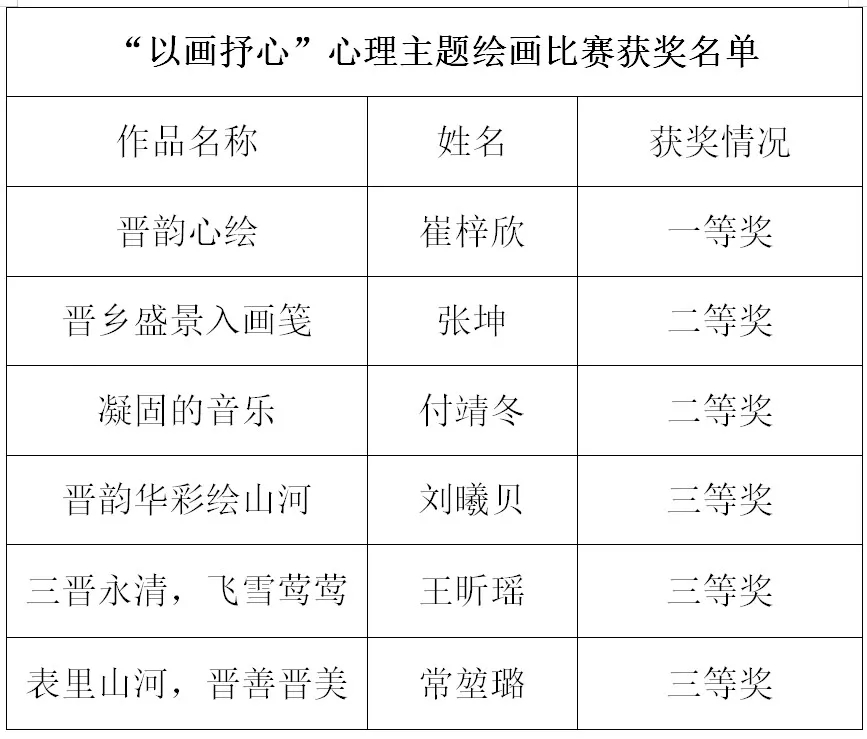 “以画抒心”心理主题绘画比赛获奖名单