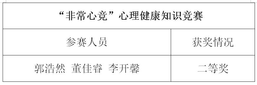 “非常心竞”心理健康知识竞赛获奖名单