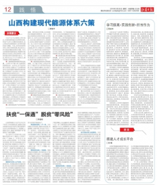 2019年3月26日《山西日报》12版刊登李桂平副院长署名文章《山西构建现代能源体系六策》。