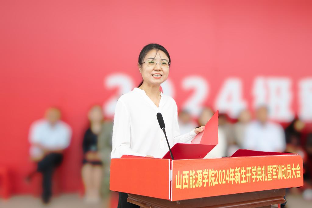 能源化学与材料工程系党总支副书记张莹作为教师代表发言。她鼓励新生们学会独立思考,学会自主学习,学会时间管理,在知识的浩瀚海洋中打开能源世界的大门;在生活中,要敢于走出舒适区,勇于面对困难与挫折,磨砺自己的意志与品质,在未来的道路上用自己的努力和汗水,书写出绚丽多彩的人生篇章。
