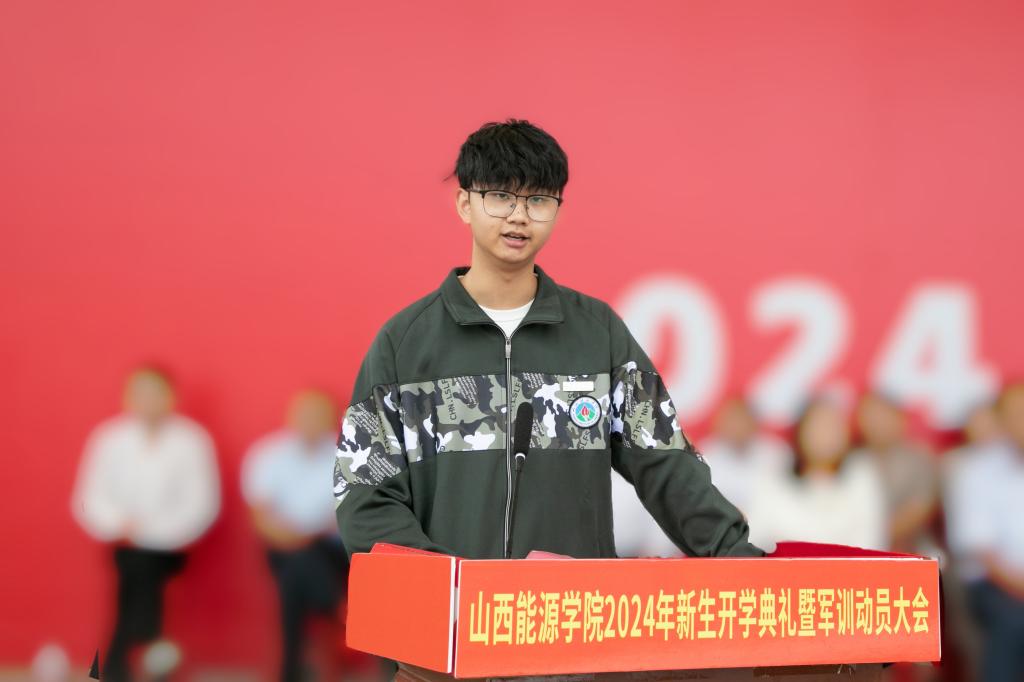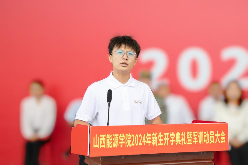采矿2201班的王子豪作为在校生代表发言。他鼓励学弟学妹们在山能尽情地去描绘属于自己大学生活的万千色彩,在大学生活中勇于探索,坚持守正创新;脚踏实地,锤炼高尚品格;心系家国,拥抱美好未来。勇敢迎接挑战,为能源革命事业的繁荣发展贡献青春力量。
