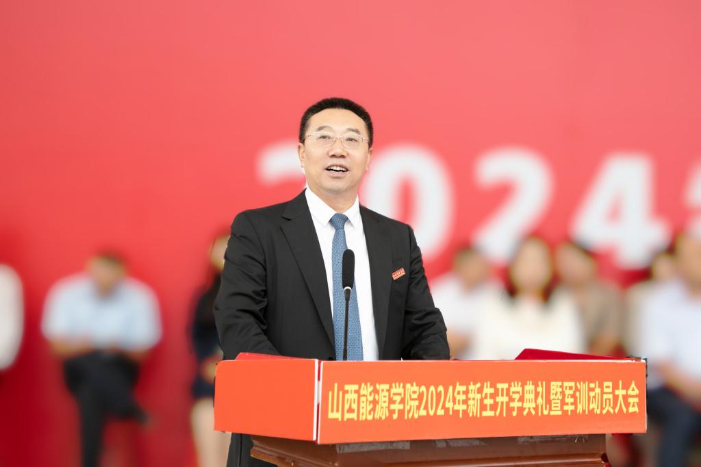 校党委副书记、院长冯国瑞致辞。冯国瑞院长从“大师”“大器”“大爱”三个方面,全面介绍了我校师资建设、专业建设、教学科研、文明创建等方面取得的丰厚成果。冯院长强调,2024级新生非常荣幸,一入校就能参与到关乎学校未来发展的本科教学合格评估这一重大事件当中,希望大家能以优异的表现,为学校迎评促建充实力量、增添光彩。冯国瑞院长对新生提出四点期望:一是立大志,涵养家国情怀,砥砺强国之志;二是明大德,锤炼高尚品格,引领崇德向善;三是成大材,淬炼过硬本领,厚植勤学善思的浑厚内功;四是担大任,不负青春韶光,肩负民族复兴的时代重任。最后,冯国瑞院长勉励同学们要立足能源国情,锚定强国目标,瞄准能源科技前沿,为中国式现代化贡献能源人的力量。