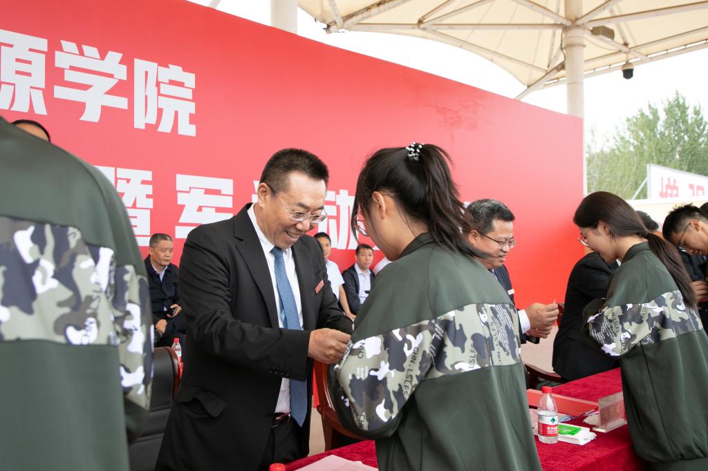 在佩戴校徽环节,校领导为新生代表佩戴学校校徽。校徽不仅代表着“山能人”的身份,更承载着“立德强能 笃学善行”的山能精神,传承着山能人的使命与荣光。