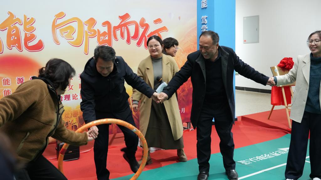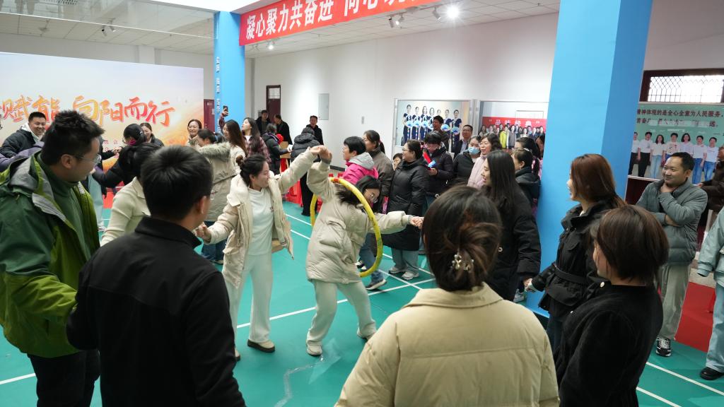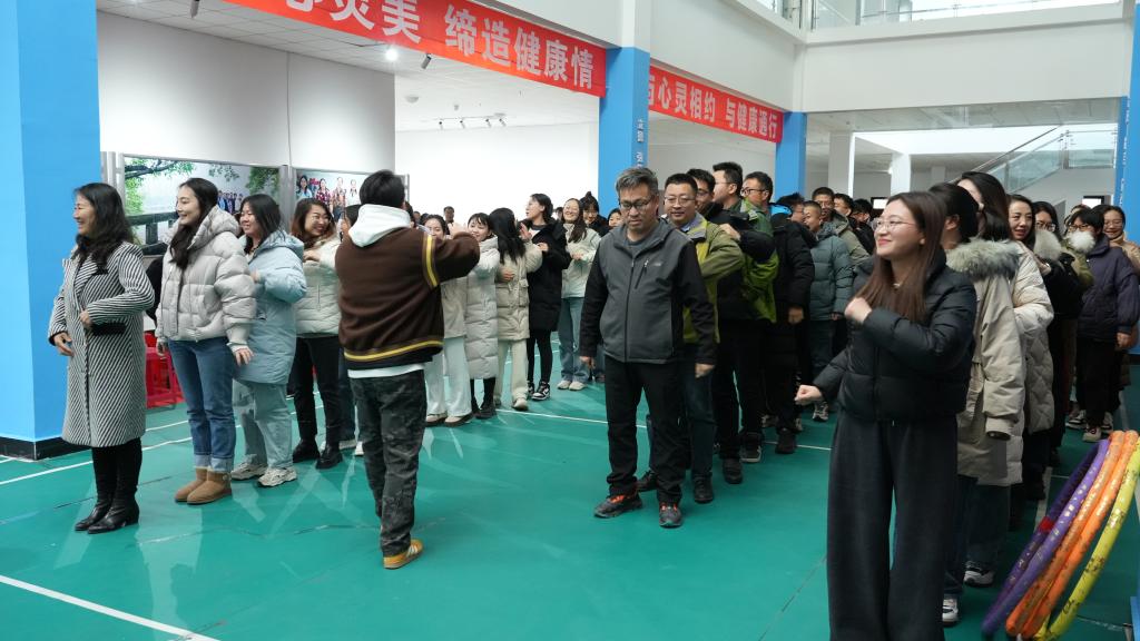教职工们在热烈的氛围中进行了滚雪球、按摩操、心有千千结、一圈到底、坐地起身、相亲相爱一家人等趣味游戏。