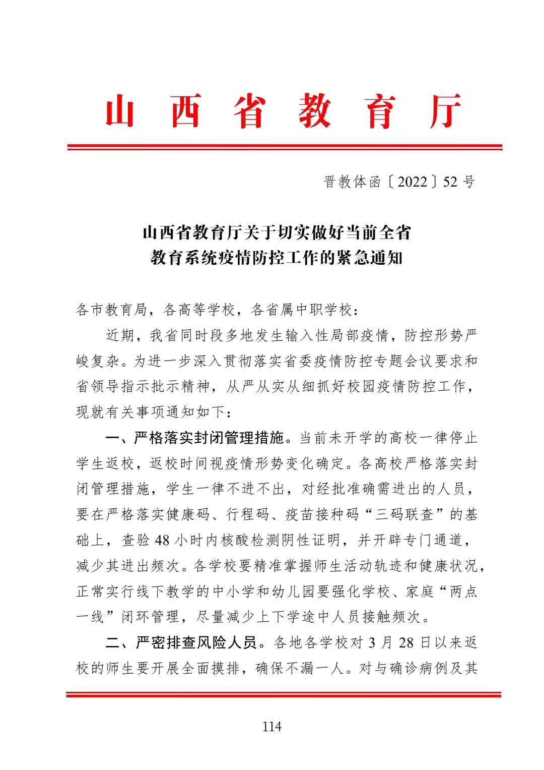 山西省教育厅关于切实做好当前全省教育系统疫情防控工作的紧急通知