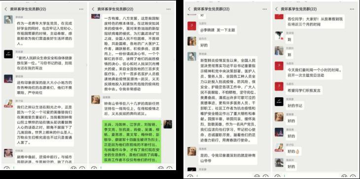 新型冠状病毒感染疫情发生以来,全国人民坚决贯彻落实习近平总书记重要指示精神和党中央决策部署,医护人员、警务人员、全国各工种人员全力以赴投入到战“疫”情、防风险、保安全、护稳定各项工作中,广大人民不畏艰险、不怕牺牲,坚守岗位、英勇奋战,涌现出许多可歌可泣的英雄事迹,更有许多医务人员、干部职工、社区工作者为抗击疫情和维护安全稳定作出了重大牺牲和奉献。国旗半垂,举国同哀,缅怀英烈,致敬英雄。针对抗“疫”战争中涌现的先进人物和感人事迹,资源与环境工程系党支部于2020年4月7日下午在教师党支部和学生党支部微信群组织开展了“致敬战“疫”英雄”主题线上党日活动,激励师生牢记入党初心与使命,忠诚履职尽责,踏着他们的足迹奋力前行,用青春践行使命,用行动实现梦想。为使主题党日活动开的成功,开出成效,总支书记马蔚东、组织员李晓建提前准备,定好主题、列出提纲,并做引领发言。
