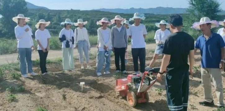 在田间地头,同学们现场看到了无人机喷洒农药、环境监测系统、土壤墒情监测站及智能远程虫情报测系统等一系列现代化农业设施,村民王吉珍向大家讲解了许多现代农业的相关知识,同学们感受到了科学技术对农业发展的深刻影响,正如习近平总书记所强调:“没有农业现代化,没有农村繁荣富强,没有农民安居乐业,国家现代化是不完整、不全面、不牢固的。”