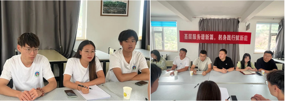 阳泉市郊区旧街乡政府团委书记、一级科员张凯峰分享到,目前南沟村处于一个巩固拓展的过渡阶段,资金申请困难、人才流失问题、营销和设备管理技术问题、小杂粮的产销问题都会有相关基层治理政策持续推进解决。习近平总书记说“农村是一个广阔的天地,到那里是可以大有作为的”,希望各位实践队员可以将所学所知带到南沟村来,帮助解决实际问题,为旧街乡的发展建言献策。通过两个多小时的交流,实践队员与到村工作的大学生共同分析乡村发展面临的问题,共同探讨解决方案,在思维的碰撞中不断挖掘乡村发展的潜力。