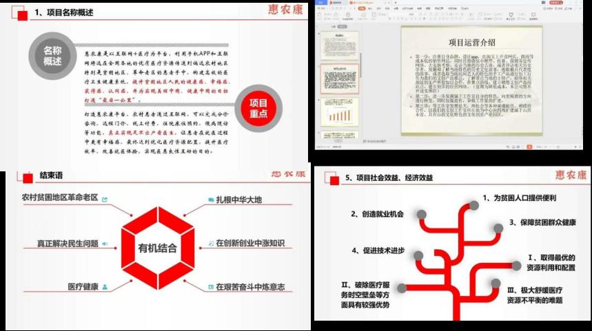 ·  惠农康以人文为主,通过精准扶贫,采用互联网加医疗的手段,为偏远地区进行医疗服务从而促进医疗结构的改革,推动社会效益与经济效益。