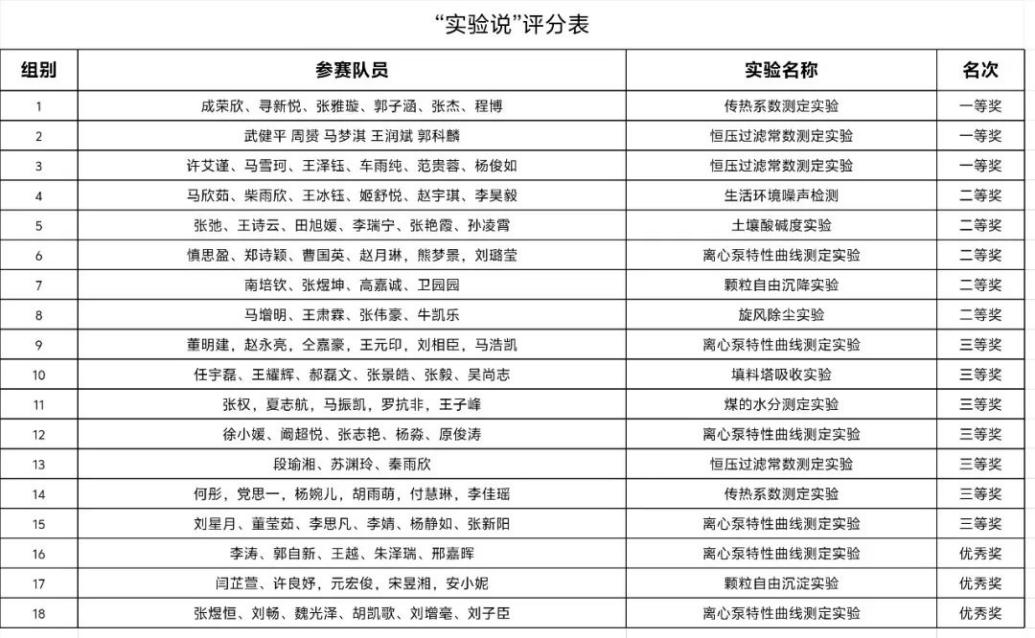 经过紧张的角逐,现将资源与环境工程系第六届“实验说”活动结果公示如下: