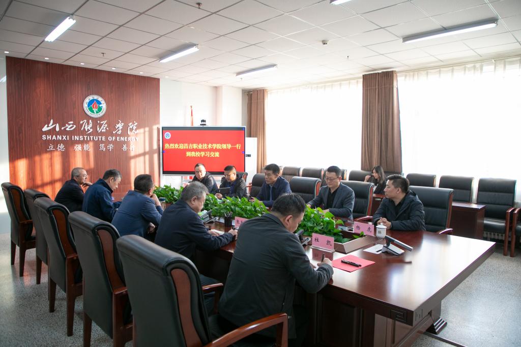 在山西省援疆工作的大力支持下,10月24日,昌吉职业技术学院梁军书记带领学院相关领导干部来到我校进行学习交流。校党委书记冯锋会见了梁军书记一行,并在综合楼九层东党委会议室开展了交流座谈。校党委委员、副院长刘汉涛主持了会议。校办、宣传统战部、人事部、教务部、科技产业部、实验实训中心、电气与控制工程系、能源与动力工程系相关负责人参加了会议。