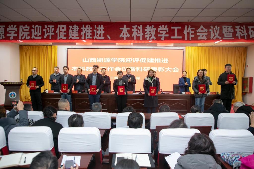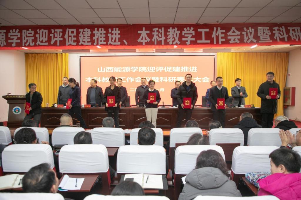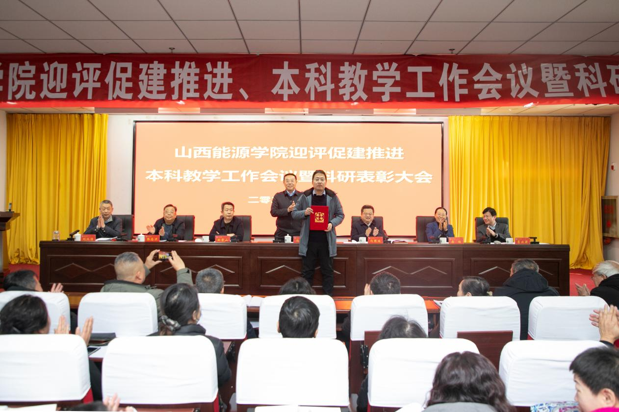 党委副书记曲晋山同志宣读了“打造书香山能,争做读书之星”表彰名单。党委委员、副院长、评建办主任刘汉涛同志宣读了突出贡献科研成果表彰决定。主席台领导为获得“国家级项目突出贡献奖”、“基础研究先进个人奖”、“青年科技新星奖”、“哲学社会科学发展贡献奖”“服务地方突出贡献奖”“高水平论文贡献奖”等奖项的教师代表颁发荣誉证书,会场上响起热烈的掌声。