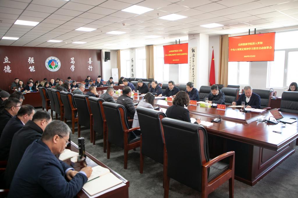 会议要求,紧紧围绕深入贯彻中央八项规定精神这个主题,以学习研讨深度化、查摆问题务实化、集中整治严格化、开门教育灵活化的标准一体推进学查改,推动学习教育取得实在成效。要坚持个人自学和集中学习相结合,引导党员、干部锤炼党性、提高思想觉悟,切实增强贯彻落实中央八项规定精神的自觉性坚定性。要全面深入查找贯彻中央八项规定及其实施细则精神方面存在的问题,运用由风及腐案例加强警示教育,深挖问题根源,以案为鉴、以案促改促治。要对标对表、结合实际列出问题清单,扎实推进集中整治,坚持“当下改”与“长久立”相结合,健全作风建设常态化长效化制度机制。要坚持开门教育,自觉接受群众监督评判,研究解决师生群众的急难愁盼和亟待解决的突出问题。要坚持两手抓两促进,将开展学习教育同贯彻落实党中央及省委重大决策部署结合起来,同深入推进党风廉政建设和反腐败斗争结合起来,同推动我校中心工作结合起来,把学习成效转化为推动学校高质量发展的强大动力。