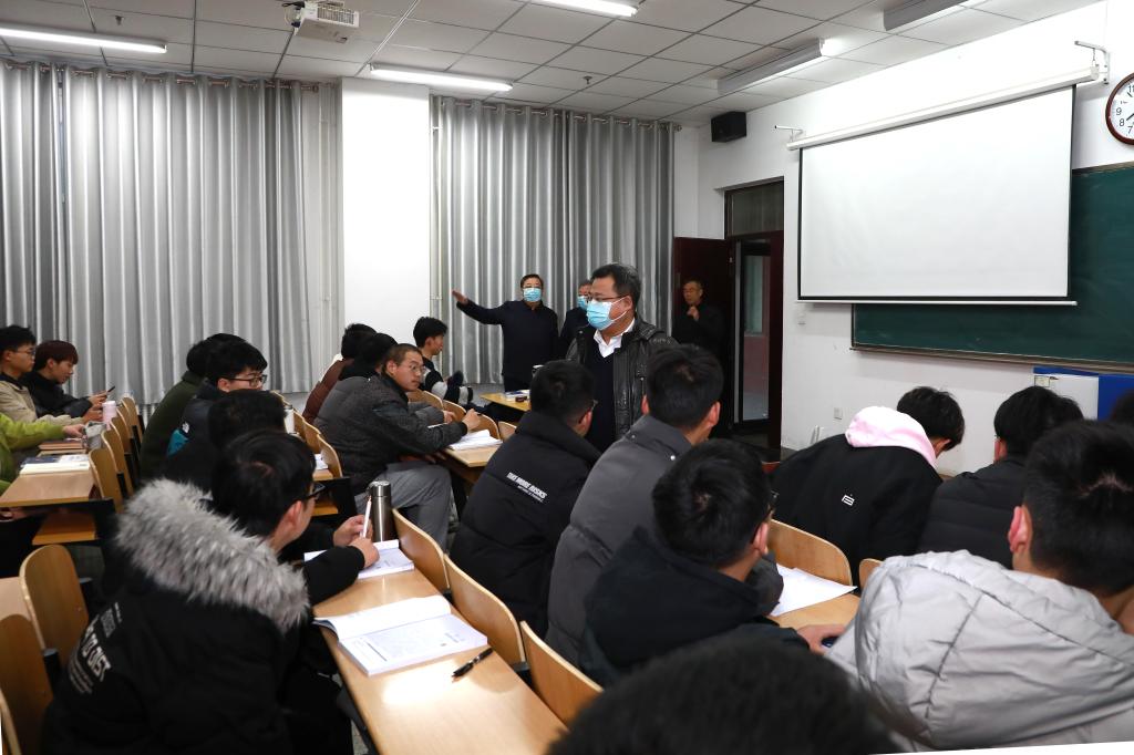 党委副书记、副院长(主持行政工作)冯国瑞,纪委书记张志力,党委委员、宣传统战部部长兼两办主任张玉福,纪委副书记仇瑞新等对教学课堂和系部办公场所进行了详细的检查;党委副书记曲晋山,党委委员、副院长葛波蔚,党委委员、副院长刘汉涛等对后勤保障及校园安全工作进行了细致的检查。
