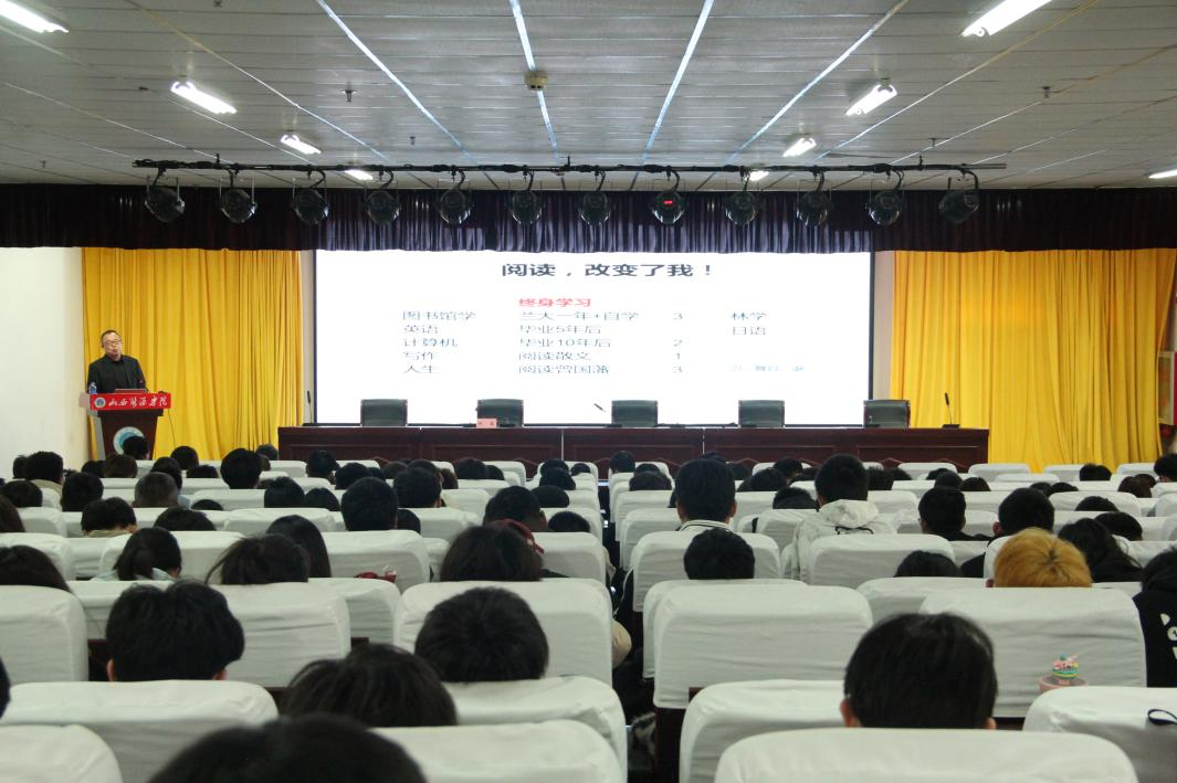 3月16日下午,由我校图书馆、团委主办的校园读书节系列讲座之“改变,从阅读开始”主题讲座在综合楼二层东报告厅成功举行。