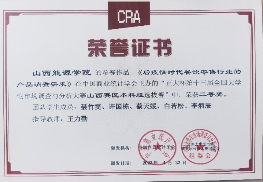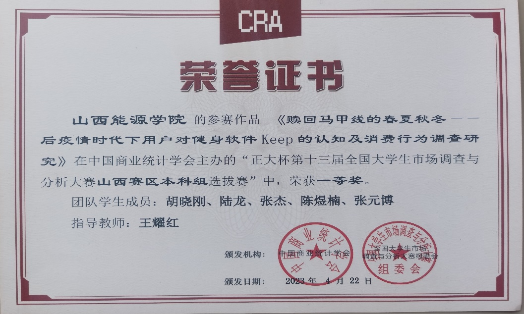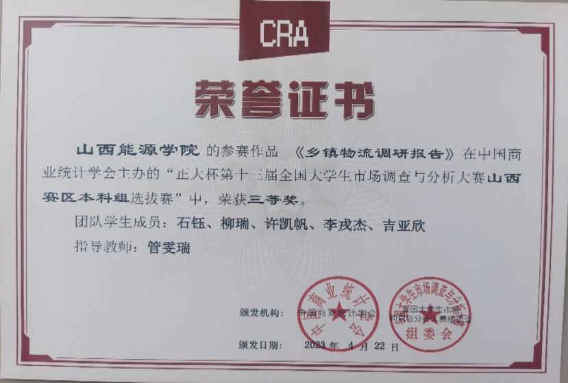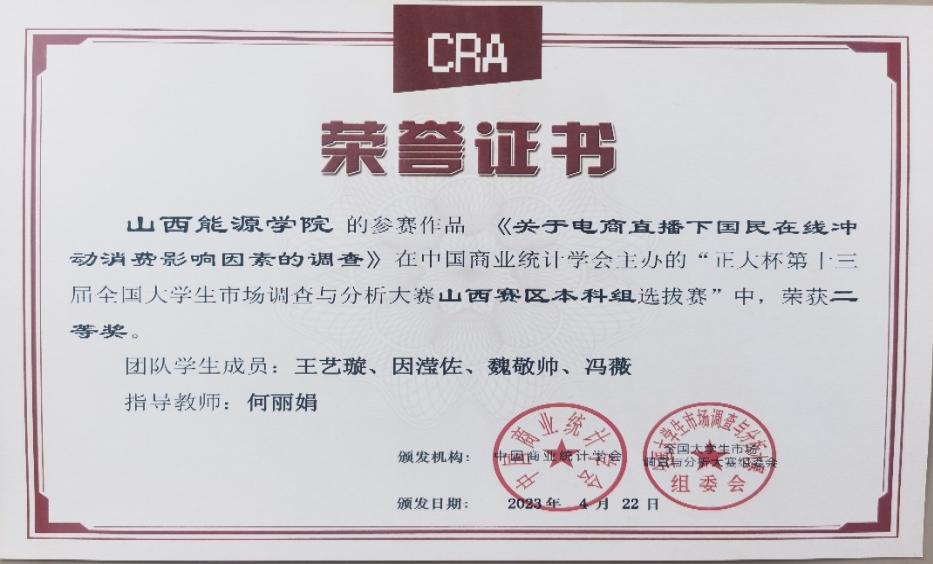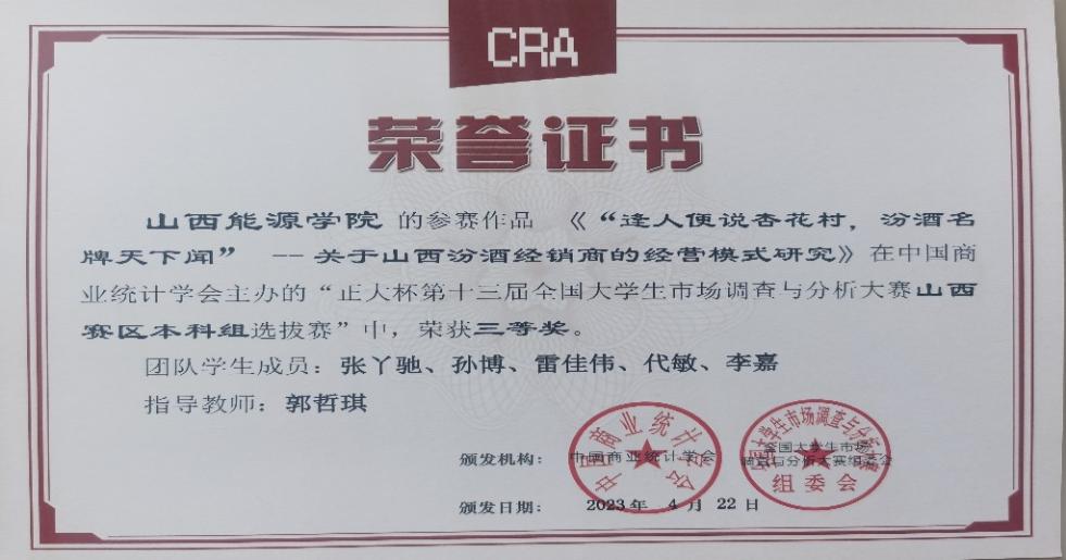 近日,“正大杯”第十三届全国大学生市场调查与分析大赛落下帷幕,我校参赛团队喜获佳绩,荣获省级一等奖2项、省级二等奖3项,省级三等奖2项。