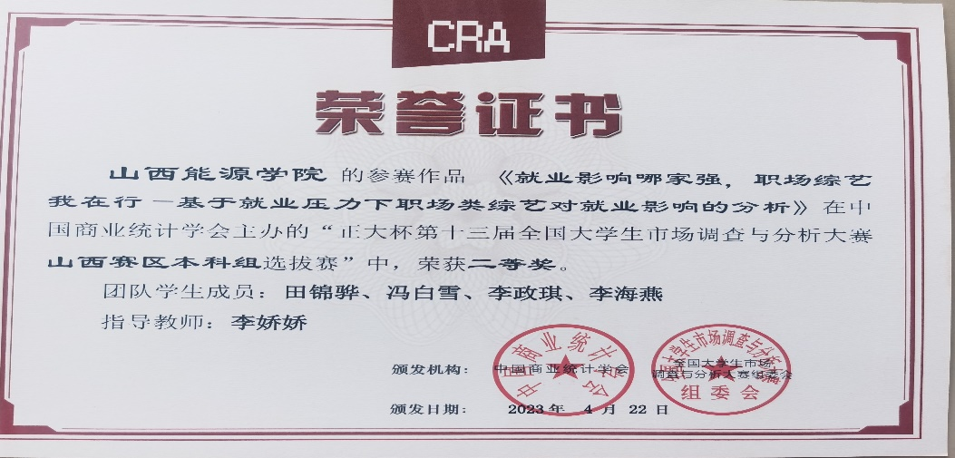 此次比赛是对我校教学改革成果的全面检验,同时也展现了我校学生的社会调查、数据处理与分析等专业实践能力,培养了学生的科学研究能力、创新创业意识和团队合作精神。