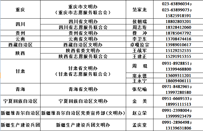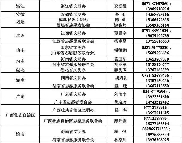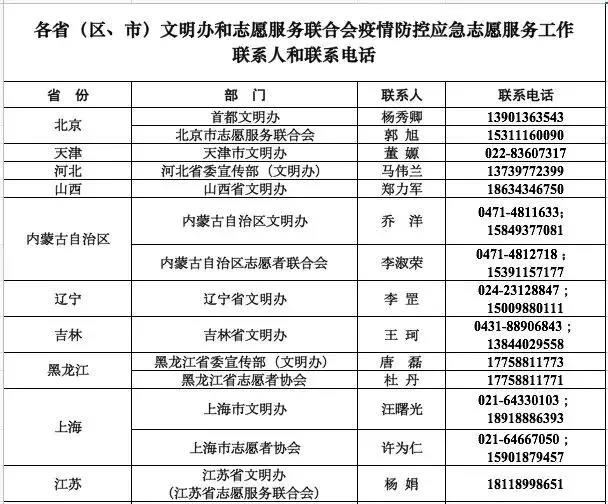 附:各省(区、市)文明办、志愿服务联合会疫情防控应急志愿服务工作联系人和联系电话