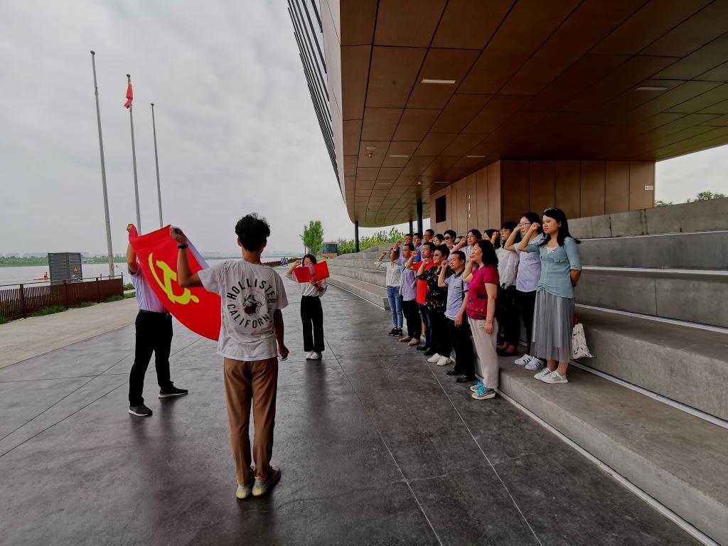 随后,在风景优美的汾河公园内,党员干部们统一佩戴党徽,整齐列队,在党旗下庄严宣誓,重温入党誓词。通过重温誓言,进一步牢记共产党员的政治责任和历史使命,牢记无论在任何情形下都要践行责任、恪守义务,永葆共产党员的先进本色。宣誓结束后,全体教师党员在公园沿岸合唱《没有共产党就没有新中国》、《我和我的祖国》等歌曲,讴歌党的丰功伟绩,祝福祖国繁荣昌盛。