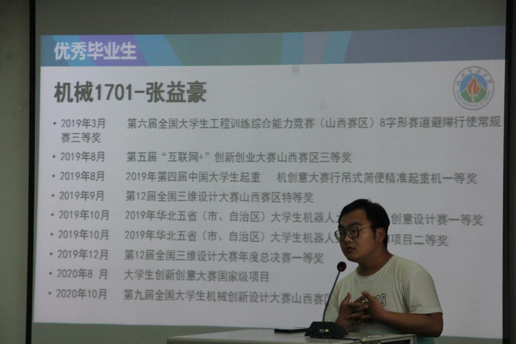 本次座谈会邀请了优秀毕业生代表张益豪、董富胜、王芳芳同学,与2019级、2020级学弟学妹们共同分享了四年大学生活的点点滴滴。张益豪学长作为系机器人协会成员,勤学苦练,代表我校在国家级竞赛中屡获佳绩。他鼓励大家要拓宽自己的兴趣爱好,丰富自己的校园生活。董富胜学长在校期间成绩优异,数次获奖学金、三好学生、先进个人等荣誉称号。并在本科学习期间,发表了两篇期刊论文。他规劝学弟学妹们要夯实自己的学业基础。业精于勤,用知识的力量武装自己。王芳芳学姐介绍了自己的班干部经历及毕业求职经验。当提及自己在大学期间仍有诸多遗憾时,她希望各位学弟学妹能够认真学习,不负韶华。