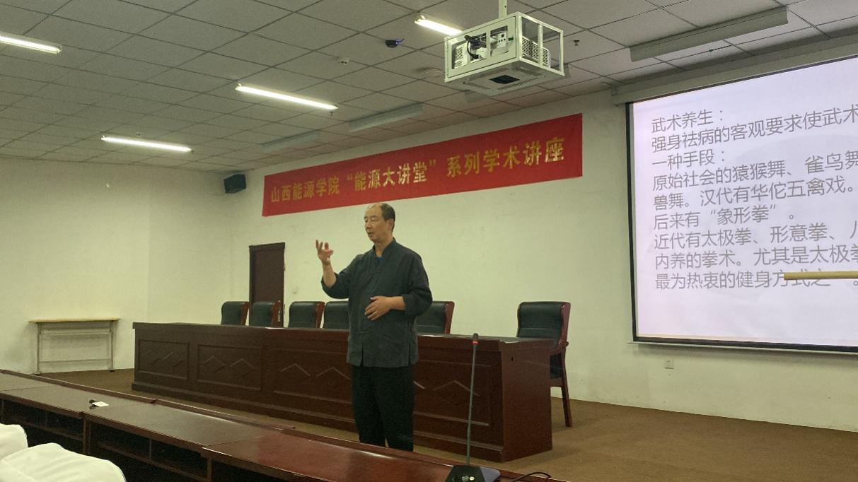 为营造科研与学术创新的浓厚氛围,提高广大师生自我保健意识和健康水平。5月30日下午,由科技产业部主办,强基学院承办的“学院大讲堂”系列学术讲座在综一阶报告厅举行。山西大学体育学院毛明春教授受邀作了题为“太极拳文化与健身”的专题讲座。讲座由强基学院体育美育教研室主任毛磊主持,他介绍了毛明春教授个人履历和学术成果,并代表学校对毛教授的到来表示热烈欢迎。