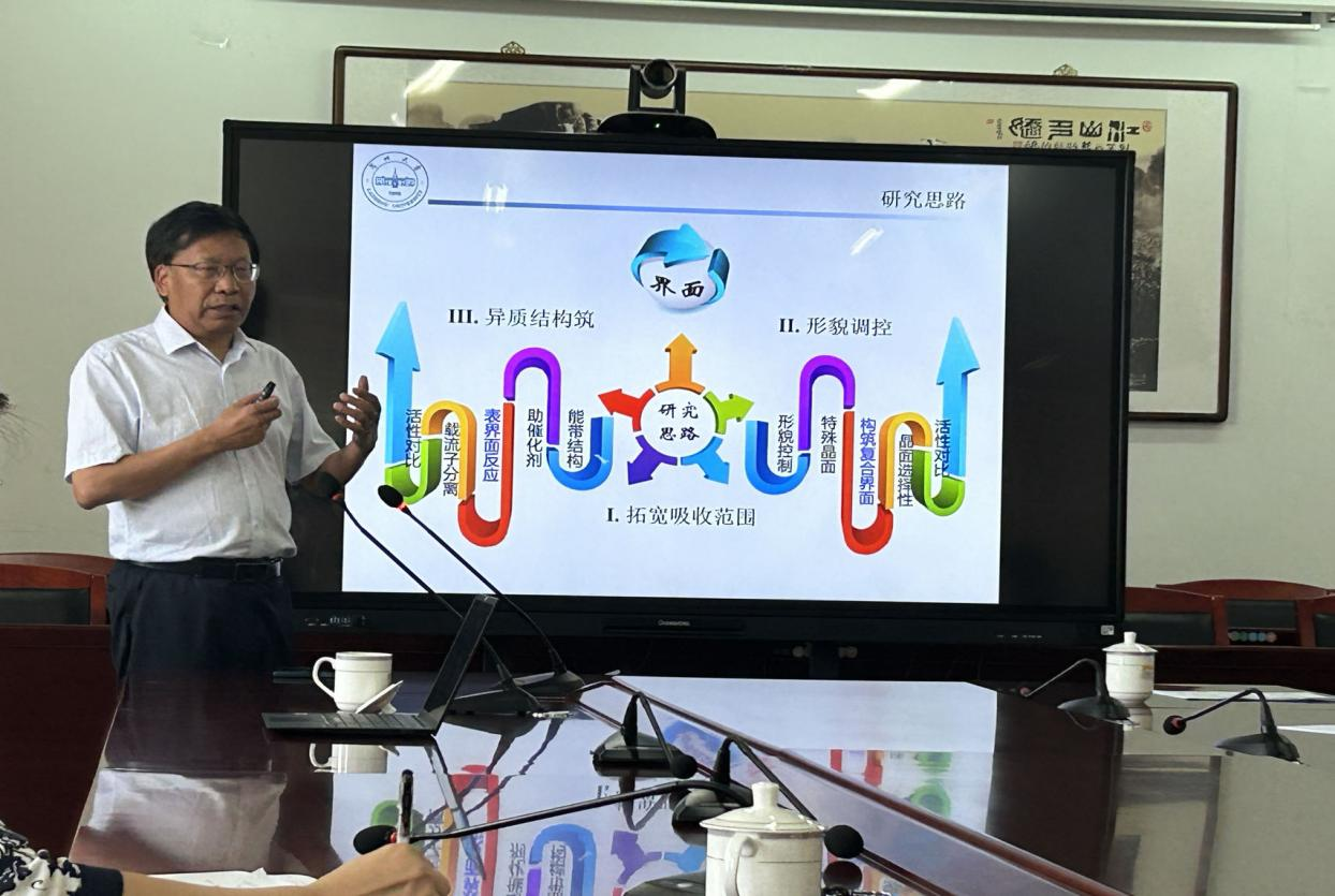 在互动环节中,我校多位教师结合自身的研究方向,与王教授进行了深入的探讨,包括最新的光电转化材料的研究进展,研究材料的选择及光催化的相关问题。除此之外,对如何进行科学研究项目的申报问题,王教授也做出了详细的解答,教师们都表示收获颇丰。与此同时,我校教师还观看了CCTV4《华人故事》栏目中关于王教授及其团队的采访视频,视频中讲述了他拒绝国外高薪礼聘,并返回母校奉献20余年的故事,还被亲切的誉为会“发光”的教授。观看完视频之后,教师们深受鼓舞,不仅感受到王教授深厚的学术素养和创新精神,还有崇高的爱国情怀。最后,强基学院相兴华院长对本次讲座进行了总结:王育华教授的研究成果源于生活、指导生活、高于生活,具有极高的学术与应用价值。