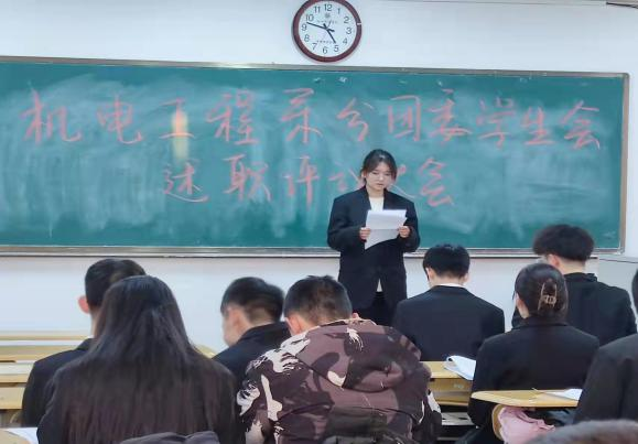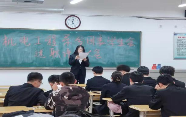 12月27日下午,太阳集团官网机电工程系分团委学生会召开了“机电工程系分团委学生会述职评议大会”,各部门负责人,部员出席会议。本次述职大会以各部门为单位,总结过去一学期的工作,谋求新思路,精益求精,更加完善的工作为主题召开。会议由机电工程系学生会主席贾少凡,姚圣龙主持。