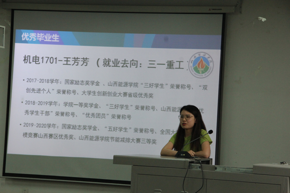 优秀学生党员王光耀和优秀学生干部李崇海,就自身的学习和班级工作,与大家进行了交流。并代表参会学生,祝即将毕业的学长学姐们前程似锦,未来可期。