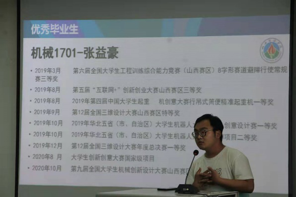 本次座谈会邀请了优秀毕业生代表张益豪、董富胜、王芳芳同学,与2019级、2020级学弟学妹们共同分享了四年大学生活的点点滴滴。张益豪学长作为我系机器人协会成员,勤学苦练,代表我校在国家级竞赛中屡获佳绩。他鼓励大家要拓宽自己的兴趣爱好,丰富自己的校园生活。董富胜学长在校期间成绩优异,数次获得奖学金、三好学生、先进个人等荣誉称号。并在本科学习期间,发表了两篇期刊论文。他规劝学弟学妹们要夯实自己的学业基础。业精于勤,用知识的力量武装自己。王芳芳学姐介绍了自己的班干部经历和毕业求职经验。当提及自己在大学期间仍有诸多遗憾时,她希望各位学弟学妹能够认真学习,不负韶华。