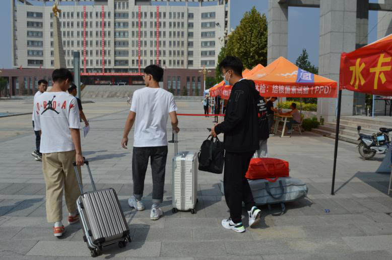 1.新生抵达学院南门后,对其行李进行消杀、检测体温,出示本人身份证、录取通知书、行程码、健康码引导新生进入校园。